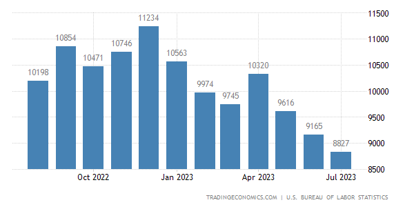 July numbers hit the lowest level since March 2021 showing signs of a more flexible job market following the unprecedented monetary policy tightening imposed by the Federal Reserve in recent months.