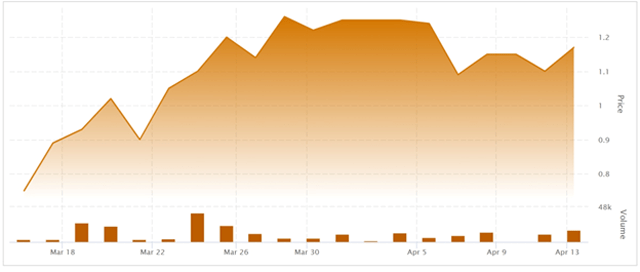 (MindBio Therapeutics Corp. stock chart – March 2026 to April 2026.)